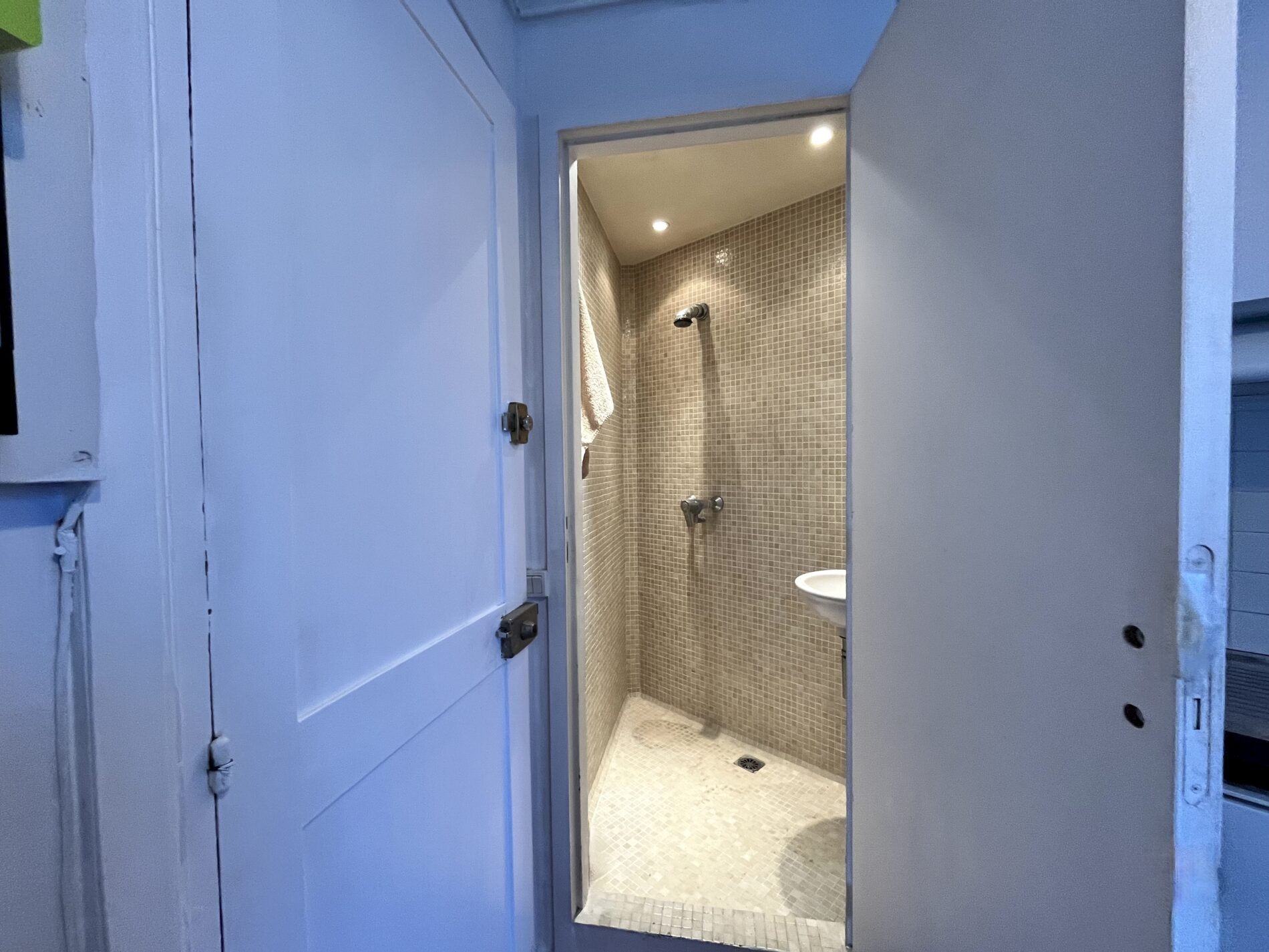 D’une surface de 21,70m3 et 8,24m2 LC et 10,58 m2 au sol , elle dispose d’une cabine de douche à l’italienne et d’une kitchenette, et bénéficie d’une cave au sous-sol de 4m2.