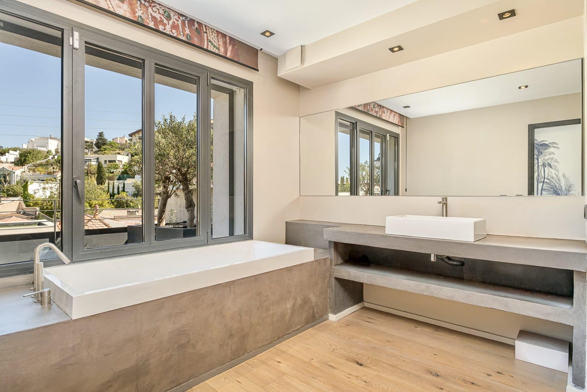 Blottie dans un vallon enchanteur bercé par le chant des oiseaux, cette maison de ville est née de la restructuration complète d’une demeure marseillaise du début du XXe siècle, devenue alors très contemporaine, puis de l’inspiration en 2022 de ses actuels propriétaires qui l’ont réchauffée d’une rénovation plus méditerranéenne.