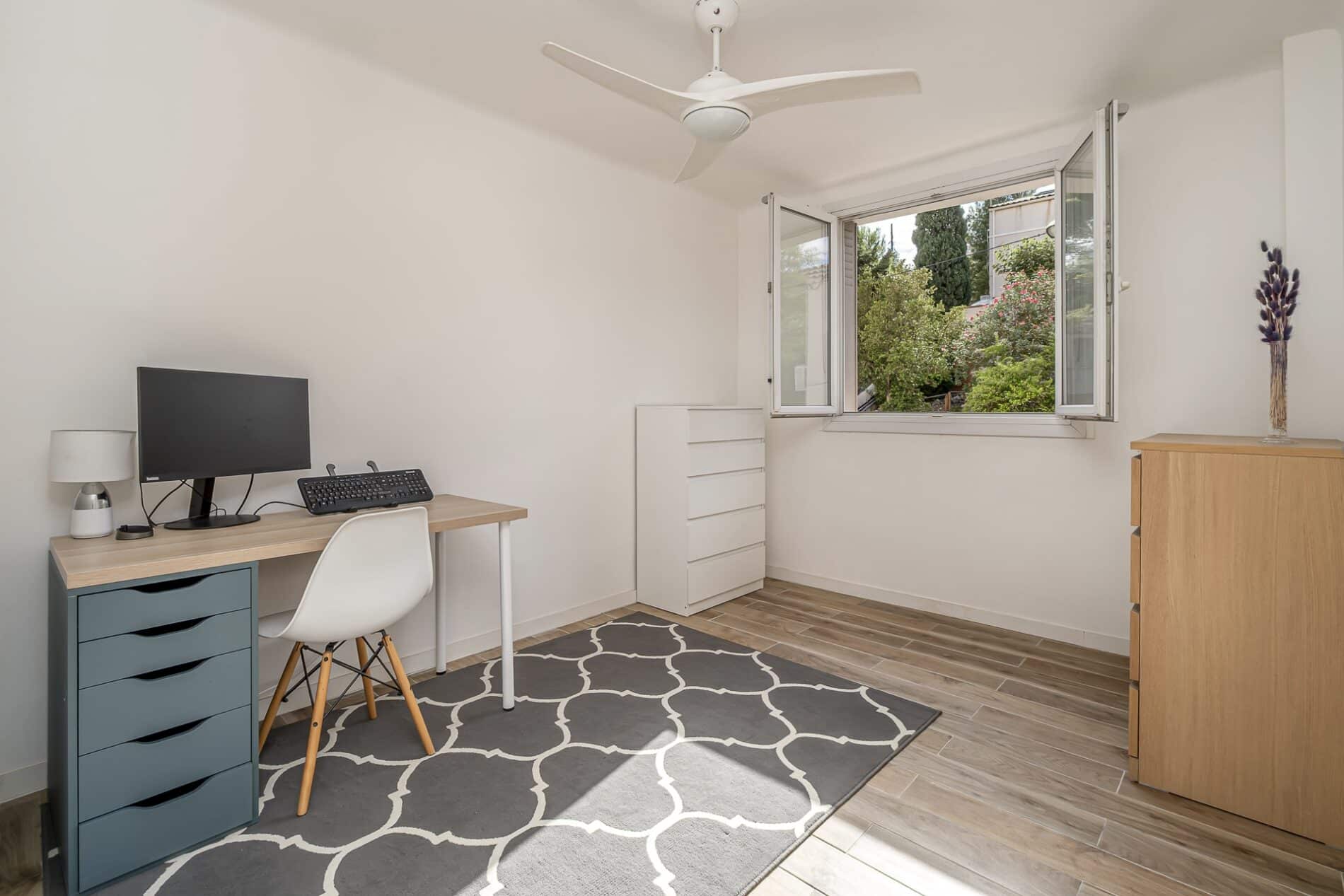 Les deux chambres prennent place de part et d’autre du salon et profitent également de la lumière de l’après-midi.