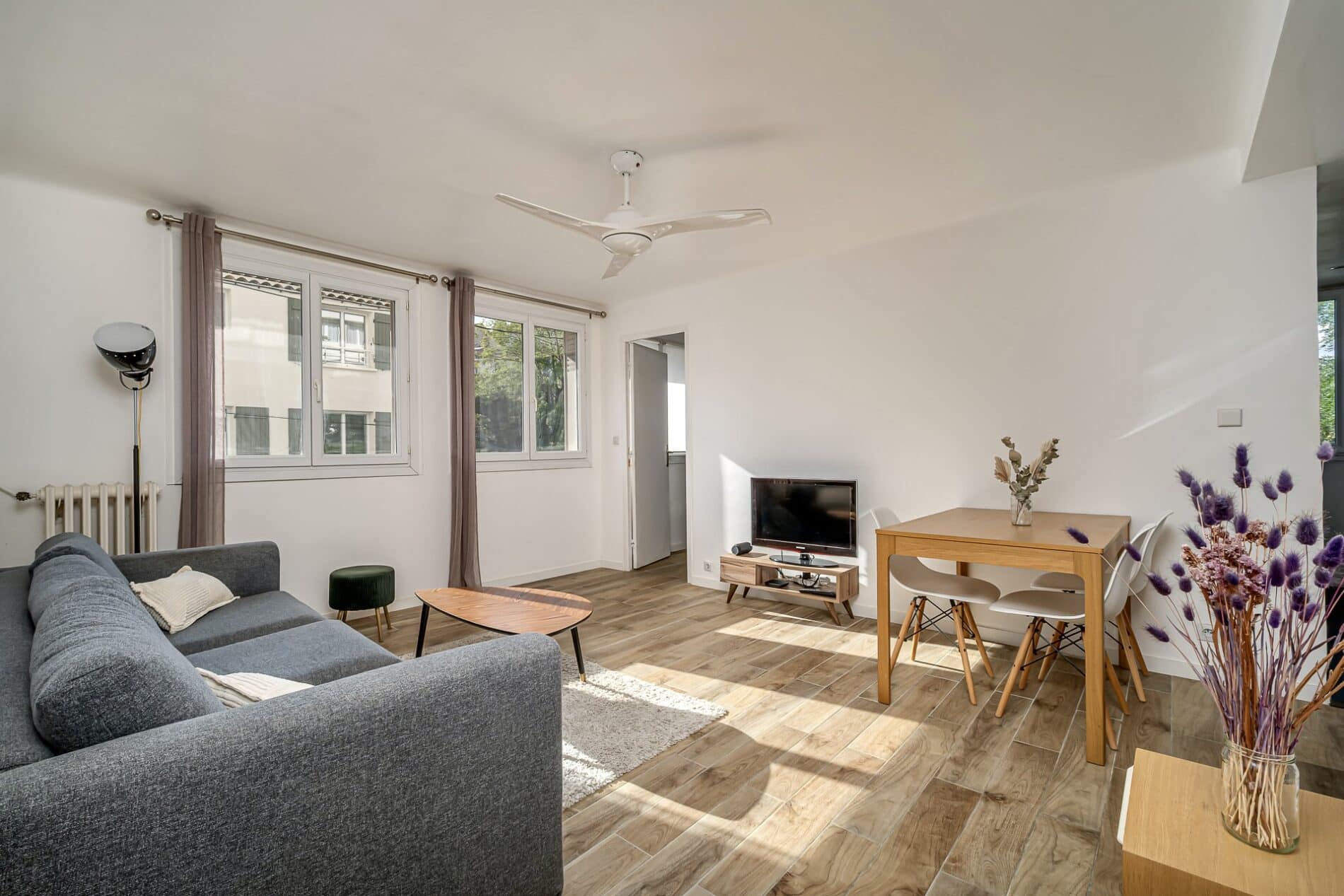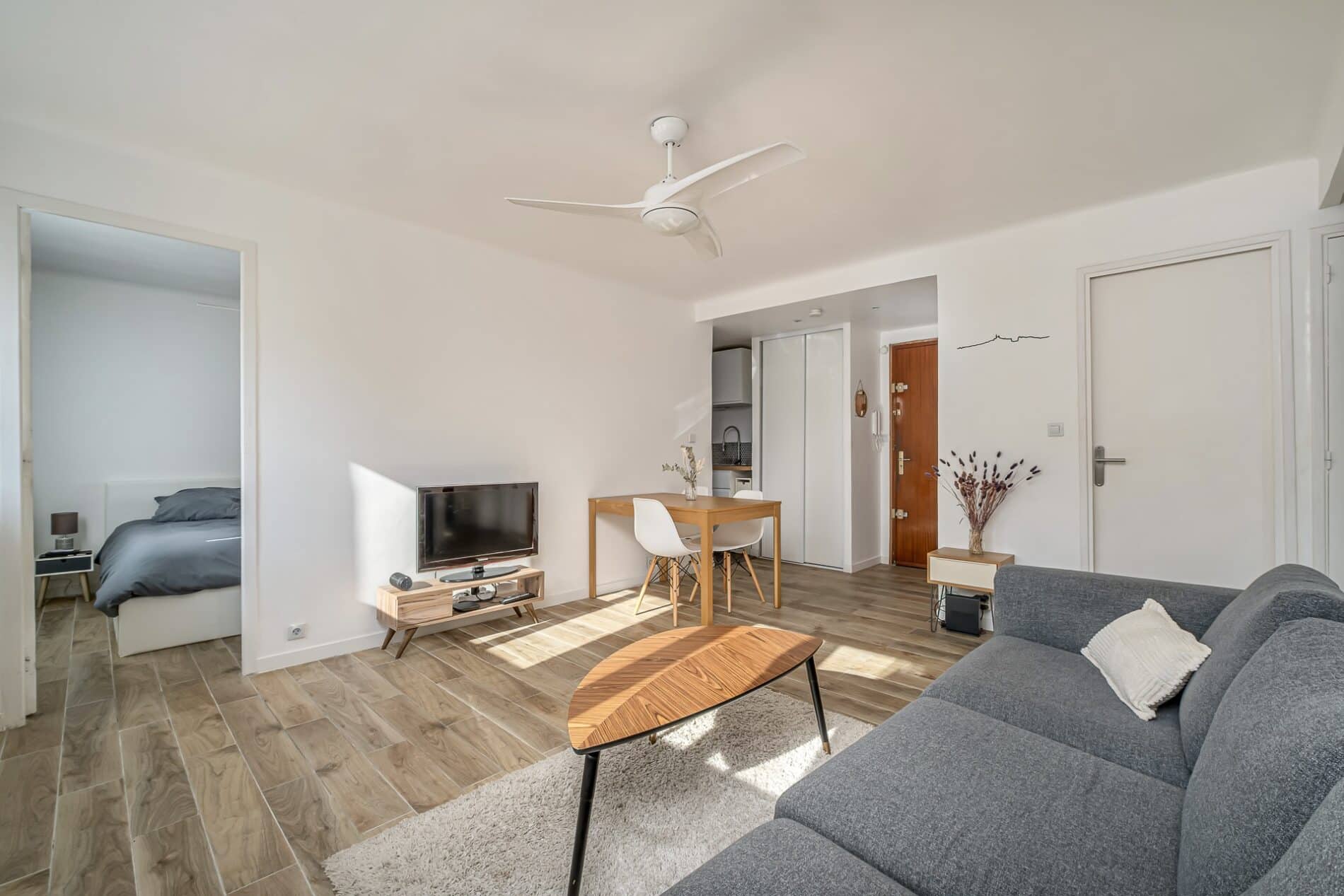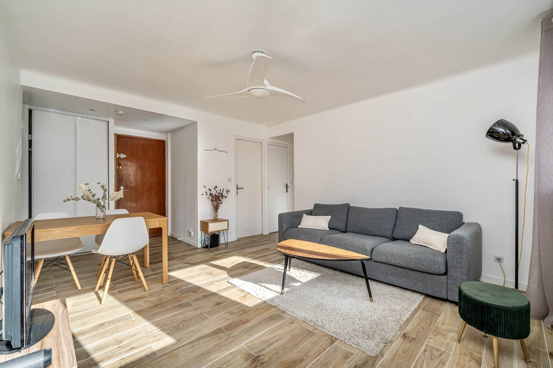 Situé au premier étage d’une résidence des années 70 au calme du quartier de Vauban, ce petit 3 pièces a été entièrement rénové en 2020.